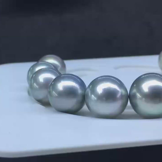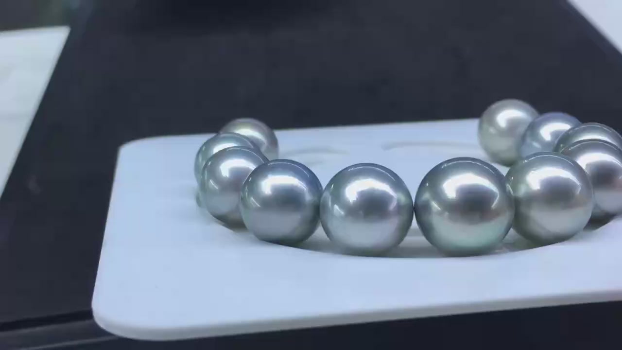 High quality aurora platinum grey color Tahitian pearls bracelet