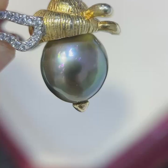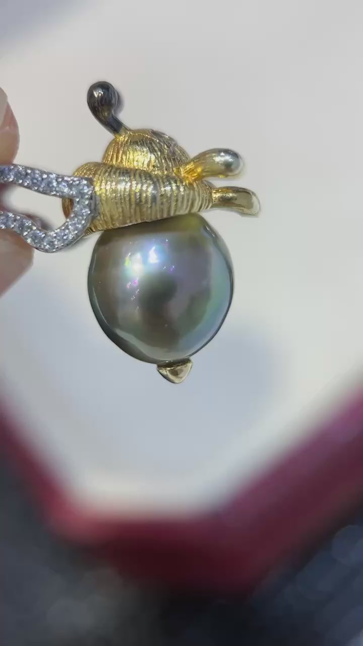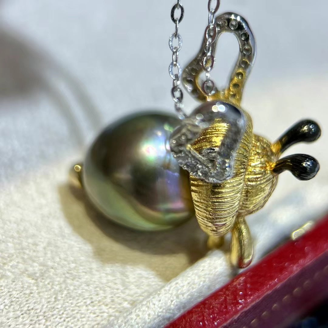 High quality “Bee”Malachite green color Tahitian pearls pendant