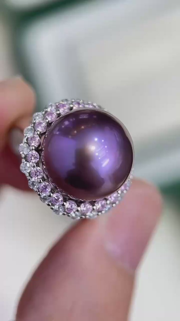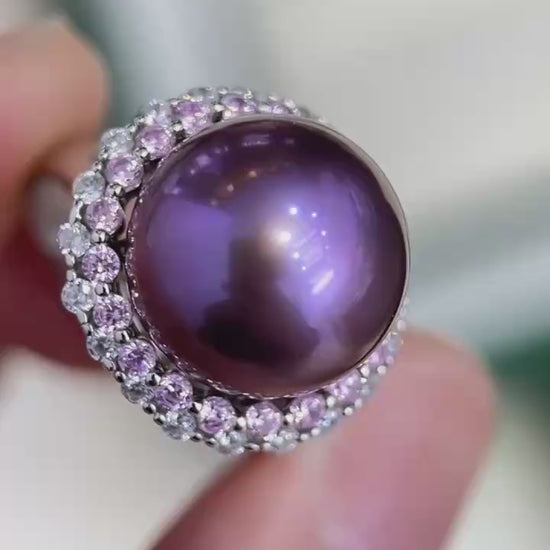 High quality deep purple color Edison pearl ring
