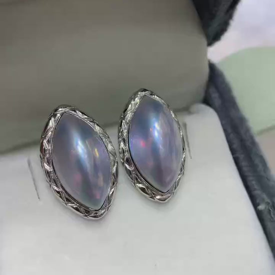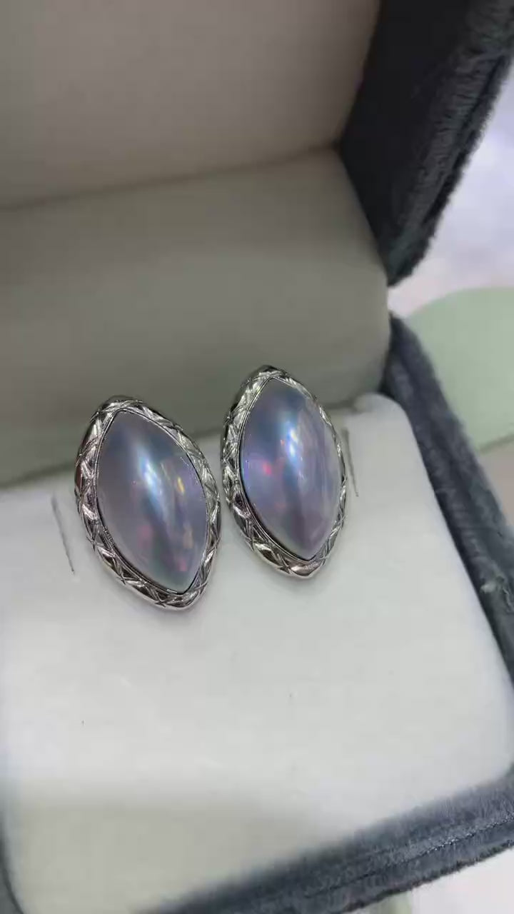High quality sky blue Japan seawater Mabe pearls earrings studs