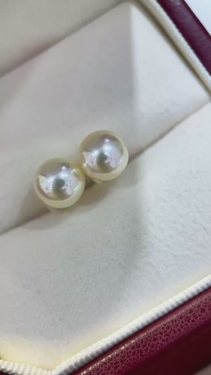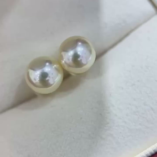 Top quality aurora “feather gold”seawater akoya pearls earrings studs