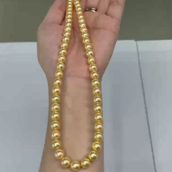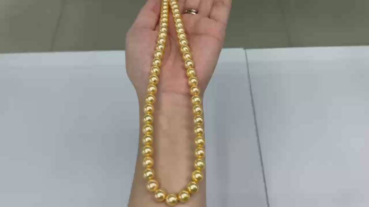 Top quality deep gold color Golden southsea pearls necklace