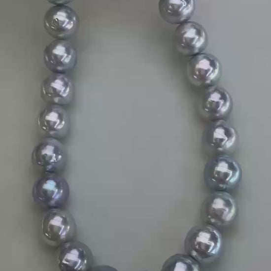 Top quality silver blue color seawater MADAMA slightly baroque pearls necklace