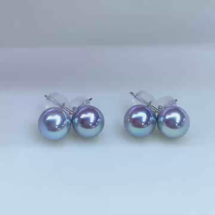 Top quality silver blue rose color seawater MDAMA Pearls earrings studs
