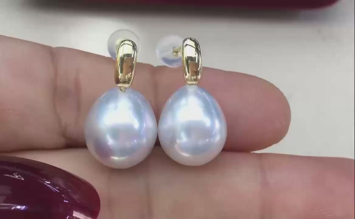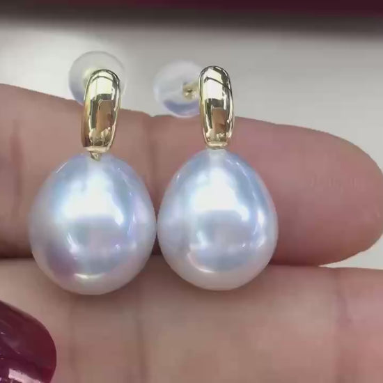 Top quality teardrop aurora white color Australia southsea baroque pearls earrings
